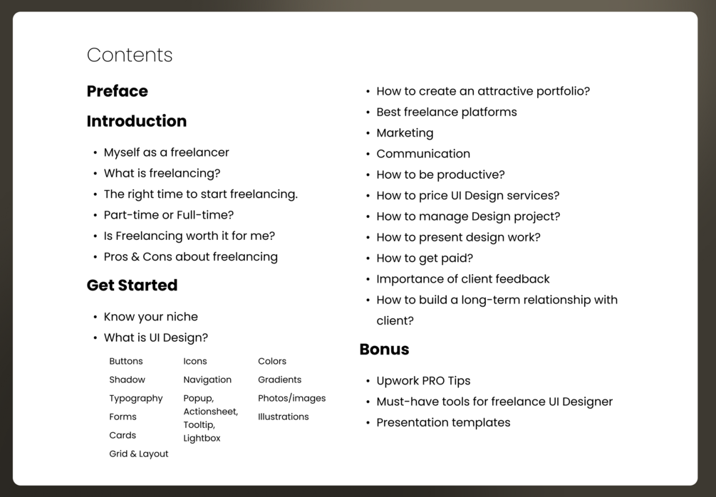 A step-by-step solution for anyone who wishes to make a career as a freelance UI designer, this Ebook will give you everything you need to flourish and thrive as a freelance UI designer.
